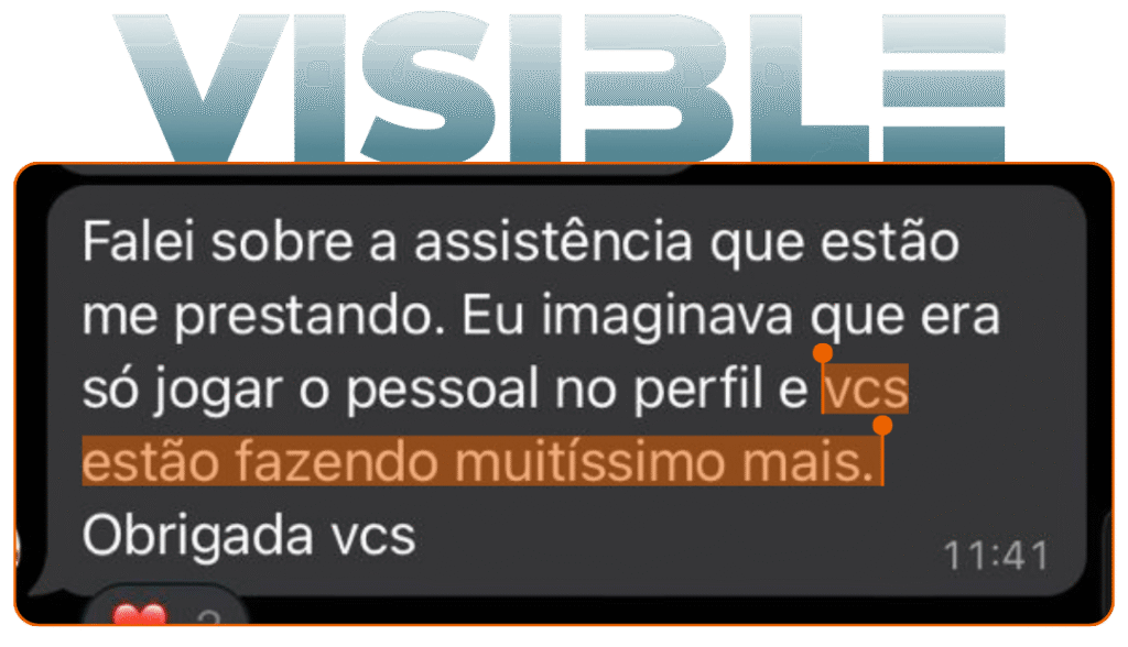 Hoje, na VISIBLE, transformo toda essa experiência em uma missão clara: ajudar advogados previdenciários a gerar resultados previsíveis no mundo digital, conectando talento e conhecimento exatamente às pessoas que precisam deles.